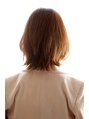 イメージチェンジに最適なミディアムスタイル。適度なレイヤーで首元を細く見せるエレガントなスタイルです。襟足を首に沿わせ外に向ける事で可愛さも作れます。【中山】