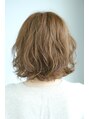 アゴラインのウェーブのボブスタイルです。パーマで動きをつくったのでラフで無造作な動きが楽しめます。中間巻きでフォワードリバース交互に巻いてかけ、トップは根元がおきるようにかけています。