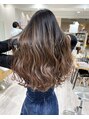 3ヶ月前に1度バレイヤージュを施して今回はピンクベージュベースでオンカラーしています。暗い部分は地毛になります。前回ローライトもプラスしているのでより繊細なデザインになっています。根元が伸びても気にならないようにデザインを入れています。