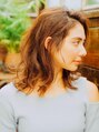 動きのあるミディアムスタイル!スタイルとしては重め系ですが全体にカールで動きを出しているのでふんわりとした雰囲気になります!ランダムにカールすることでさらに動きが加わるので明るくなりミディアムからロングになりかけにおすすめ!