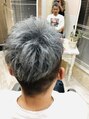 シルバーアッシュのツーブロックヘアーです。トリプルカラーで綺麗なシルバーになりますよ