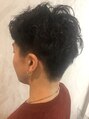サイドとえりあしはスッキリ刈り上げ、トップにはスタイリングしやすいようにパーマをプラスしています。