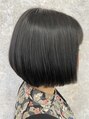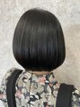 黒髪の前下がりボブです。サイドは顎下、バックは丸みを出してます。サイドの長さがあるので顔周りが短いのは嫌だけどバックはさっぱりしたいって方におすすめです。切りっぱなしボブやワンカールボブからのスタイルチェンジにもおすすめスタイルです。