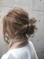 長さのある髪の毛を活かしてザックリとルーズにまとめボリュームの出すぎないようにふんわりした質感を作っています!