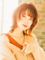 アプリコットブラウンで柔らかな春にかけて楽しめるお色に☆重たすぎないウルフで今っぽい女性らしい可愛いく☆顔まわりにふんわりボリュームを持たせながら首のラインは綺麗に見せてくれるよう、首にそわせながら外ハネに☆【橋本/インナーカラー】
