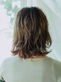 肩につくレングスで、全体にランダムに外はねを入れたミディスタイルです。毛先は軽めの質感に作り、動きが出しやすくなっています。バックは重めに残すことで今流行りのメリハリスタイルになっています。バングの長さはお好みで!