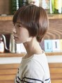人気のショートボブ。スタイリング次第で雰囲気を変化できるからボブに飽きた方などには特におすすめ。 前髪は流す事によりかジュアルによりすぎないように。 カラーはオレンジブラウンで動きとツヤ感を演出しました。