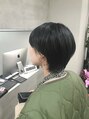 オシャレウルフです。耳にかけれるぐらいサイドは残しています。前髪も横に合わせて流れるようにカットしてあります。【N.】でオシャレにウェット仕上げです。