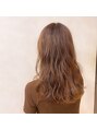ローレイヤーベースのゆったりウェーブヘア、カラーは赤みをおさえたイルミナカラー。ツヤ感と手触りが最高です!!ブルーアッシュにほんのりブラウンをミックスした透明感のあるスタイル。透明感が欲しい方にオススメです♪