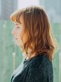 毛先を巻いてくるんとさせた眉上のショートバングが可愛いミデイアムスタイル!柔らかい印象の出るオレンジブラウンのハイトーンに。全体的に暗くなりがちな今の時期にオススメです!