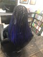 サイドのみ刈り上げての全頭ブレイズです☆紫と青のグラデーションに深めのブルーの3色を使っています!ブロッキングを地肌が見えにくいように調整しています。