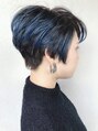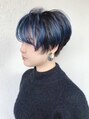 ショートはお任せください!カットはマッシュベースにウルフをちょっとだけmixしてひし形ラインの小顔ショート♪前髪はウザバンクで可愛いさUP↑↑カラーはバレイヤージュで脱色してからのネイビーブルーをONするとーー!ハンサムマッシュの出来上がり♪♪