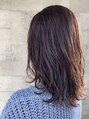 暖色系が苦手な方でも抵抗少なくチャレンジできる、アッシュベースのあバイオレットカラーのラフ巻きミディアムスタイル