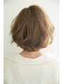 少し長めなボブの全体的にパーマをくわえた動きのあるスタイル! パーマもカールは強くなくうねりっぽくすることでニュアンスがナチュラルになりより自然な雰囲気になります!