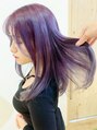 プラチナパープルのしなやかな髪色。上品な艶と 色合いが人気です。 黒髪の方は 二回のカラーリングが 必要なカラーです。