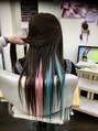 アクセントで裾にピンクとエメラルドグリーンを入れています
