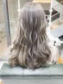 全頭ブリーチして嫌な赤味を消して人気のオリジナルアッシュグレージュカラーをのせます!赤味の全く無 いブリーチならではの透明感のあるグレーカラーを実現しま す!ブリーチの回数は髪質により個人差がありますのでご相 談くださいね!!