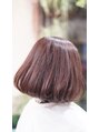 マット系のカラーです。マット系カラーですが少しブルーをかけて色味を深くしてます。あまり大幅にミックスをかけるとくすんでしまいますので、少しだけのブルーです。縮毛矯正がかかってるのでブリーチなしのワンタッチカラーです。明るくなりすぎないように