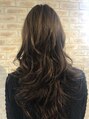 トップにレイヤーを入れて動きを出した重軽ロングベース。コテで巻いた時にほどよいカール感出ます。まとめたりする方にもオススメなスタイルです。