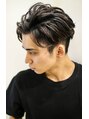 大人外国人風ハイライトパーマ アップバングソフト刈り上げ