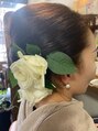 結婚式の二次会で生花を使ってアップさせていただきました(^^)シンプルなイメージが好きで、スッキリと仕上げました