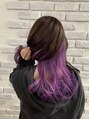 大人気鬼滅カラー胡蝶しのぶカラーインナーカラーを入れた後紫の塩基性カラーでダメージレス