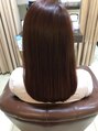 艶々ロングヘアーです。オレンジ味を抑えたブラウンカラーは透明感があって本当に綺麗です。毛先を巻いて動きをつけるとまた印象が変わって、女性らしいさもUPするのでオススメです☆