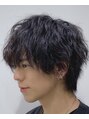 全体はマッシュにカットして耳から上にゆるめのツイストパーマをかけてます。