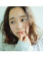 ミディアムカット、イルミナカラーで透け感グレージュに。ニュアンスカールデジタルパーマ、オージュアTR