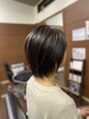 広がりやすい、髪が固い、という悩みを逆手にバッサリ切らせていただきました。トップのボリュームが自然とでるスタイルに。