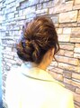 結婚式に参列されるお客様のセットさせていただきました。 波ウェーブにルーズなシニヨンスタイルで可愛くまとめました。