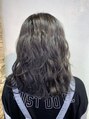 ダブルカラー×ハイライトで透明感ありのネイビーアッシュグレージュにしあげて波巻きしました!透明感欲しい方にはぜひおすすめスタイルです!
