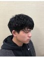 襟周りは刈り上げずにスッキリでトップに強めのパーマで動きを