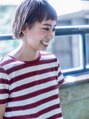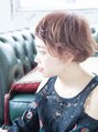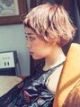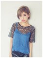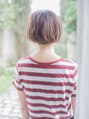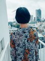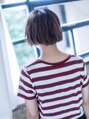 ハイトーンのカラーリングとななめに流したバングがクールな印象を与えるショートスタイル。片側は耳にかけてタイトに顔まわりはスッキリとさせたぶん、バックスタイルはボリュームを出して全体のバランスを取っています。ドライな質感でオシャレ感アップ。