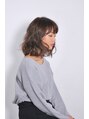 マットブラウンで赤みを消して、ニュートラルなブラウンに肩で切ったバッツリボブに中間からパーマをランダムに☆カラーとカットはシンプルにパーマで表情をつけてナチュラルだけど一癖あるスタイルに!