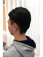 右サイドを深めに刈り上げ、後ろに流す大人スタイル