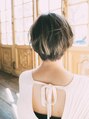 フロントに重く、サイドやバックは短くスッキリとさせるハンサムショートスタイル!ボーイッシュさの中にも女性らしさを表現したスタイルになっています。カラーは透明感のあるベージュにすることで、重くえず、ふんわりと軽い仕上がりに!