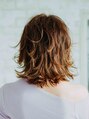 動きのある可愛いらしいノーバングスタイル!!軽いレイヤーの外ハネで明るいブラウン系のカラーリングでカジュアル感を出し、長めの前髪をセンターで分けた大人っぽさのある春らしいミディアムレイヤーになります!!