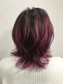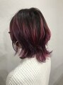 赤と紫がMIXされたの鬼滅カラー。根元を黒にすることでグッと真面目な長男らしさが出ます。ミディアムレングスだと、毛先に適度な重さを感じさせつつ、透明感を与えることができます。【ALIUS 池袋 店長 小川】【インナーカラー】【学割U24】【髪質改善】
