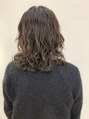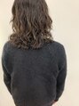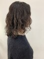 しっかりカールのかかったパーマミディアムスタイル。クセっぽく動きを出したのがポイント