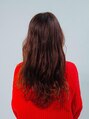 胸下のロングスタイルセンターパートで両サイドはかけているのでスッキリとした印象に。太めのコテで大きなウェーブをつけてくせ毛風のナチュラルなスタイリングです。