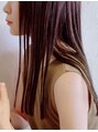毛先切りっぱなしのストレートラインスタイル。ヘアカラーは、「バイオレット・アッシュ」