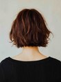 切りっぱなしラインをしっかりとのこしたボブスタイルです。顎ラインの切りっぱなしだとガーリーな雰囲気になりがちですが、表面に前下がりになるようにレイヤーをいれることで大人かわいいスタイルになっています。