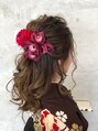 卒業式 生花 波巻き ハーフアップアレンジ