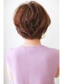 顔周りに長さを残したショートヘア。女性らしい丸さを残しながらメリハリが出るようにカットしています。カラーは全体に細かくハイライトを入れ立体感を出した後、10トーンのオリーブグレージュをオン。ナチュラルですが、色っぽくもあるように仕上げました。
