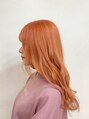 黒髪卒業★初めてのカラーでオレンジカラーに挑戦しました!一回ブリーチしてかティントバーでオンカラー☆いい感じに色が入って個性的なのと韓国風でとっても可愛かったです(^○^)お顔立ちにもピッタリで本当カワイイ(^^)♪