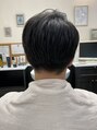 - メンズマッシュルームカット。前髪も重めですが、流せるように少しだけアシンメトリーです。