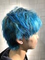 カラーのみ!ワンブリーチリタッチ on カラー毛先は2回以上必要、色味によっては1回です。ダークグレーからブルーへのグラデーション。
