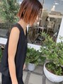 オレンジカラー×ラインボブヘア【@sowi_abe】