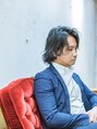 顔周りを長めに残したミディアムパーマスタイル。ソフトスパイラルパーマで束感、ハネ感、ウェーブ感をバランスよくMIXさせてランダムな動きが出るようにしています。男らしく野暮ったさが残りつつ、好感度が持てるセクシーな印象に。